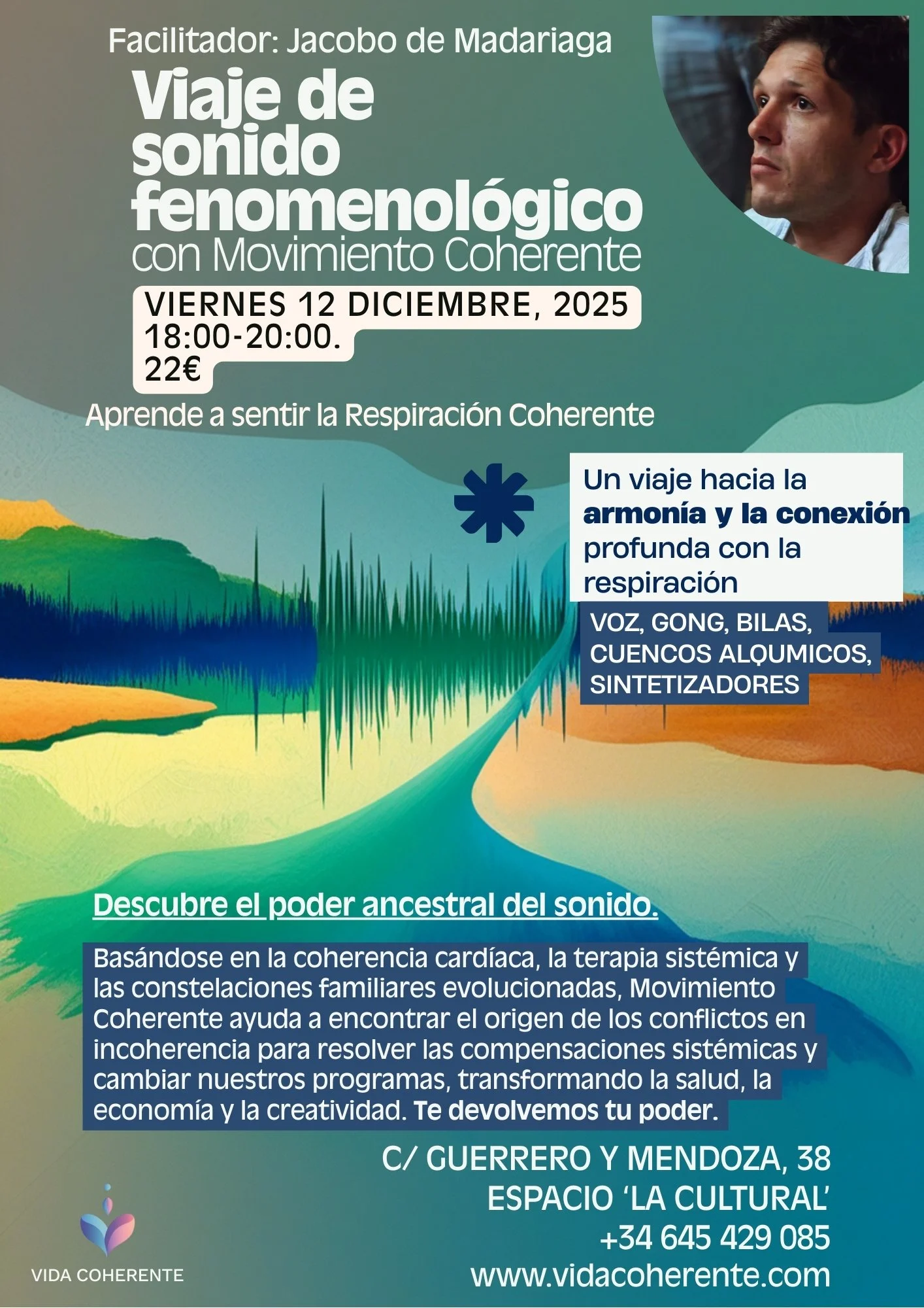 Viajes de Sonido Fenomenológicos: Sesiones de Musicoterapia Guiada con Constelaciones. Movimientos Coherentes Sistémicos Ancestrales con Sonido, encuentros grupales para aumentar el bienestar personal, la salud física y la resiliencia emocional. Descubriendo el poder sanador de la música terapéutica a través de instrumentos como cuencos de cuarzo, campanas Bilas, Gongs, hasta sintetizadores y osciladores, trabajando con precisión armónica para explorar los traumas, las heridas y los programas ancestrales que nos afectan a día de hoy generando incoherencias tanto a nivel psicológico, bioneuroemocional, sistémico, social y espiritual.